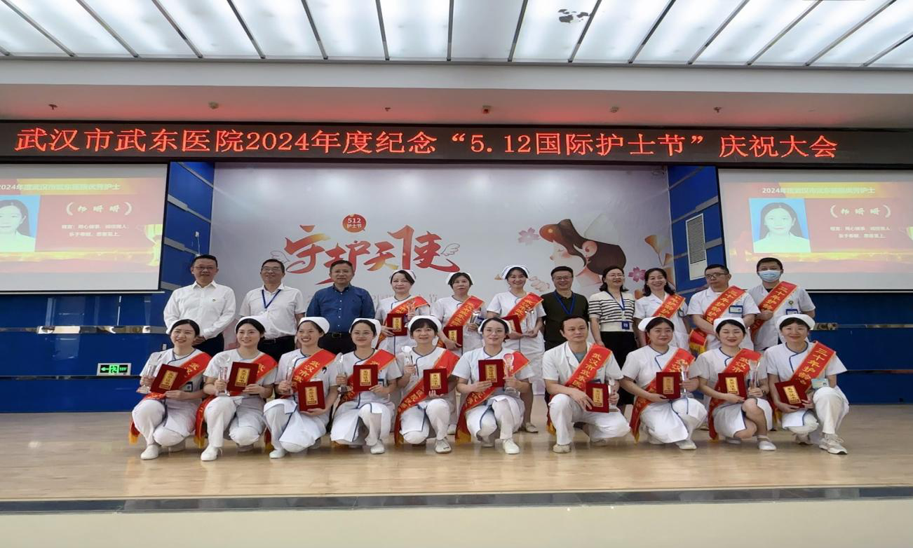 在颁奖环节上,工会主席高海兵宣读了对“2024年度获得30年护理荣誉者、优秀护士和优秀护理管理者荣誉称号的决定,院领导先后为获得荣誉称号的护士们颁发了荣誉证书及奖杯,并鼓励全院护士要以他们为榜样,秉承优良传统,发扬人道主义精神,再接再厉,真情奉献,为武东医院卫生事业高质量的发展不断作出新的贡献!
